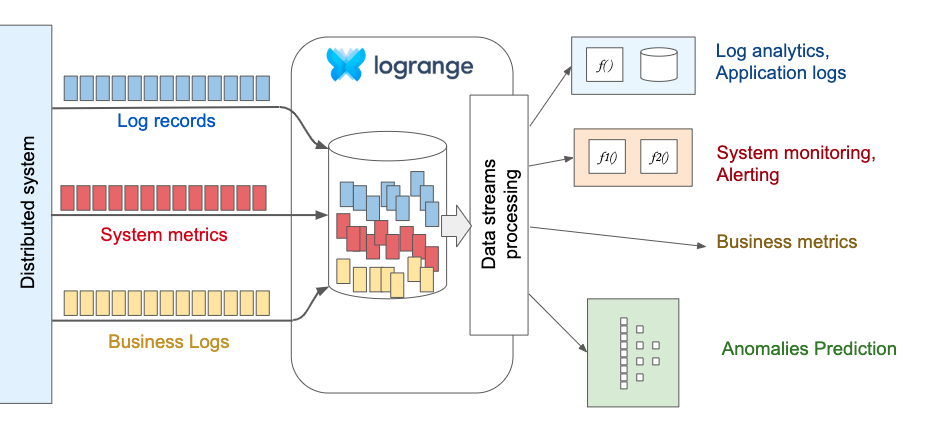 Having all the data in one place gives an advantage because there is no problem with the data integration from different data sources. For example, Logrange can keep system metrics, application and business logs or any other metrics in its database. Using this approach such tasks like finding correlation between log messages and system metrics could be easily solved.
